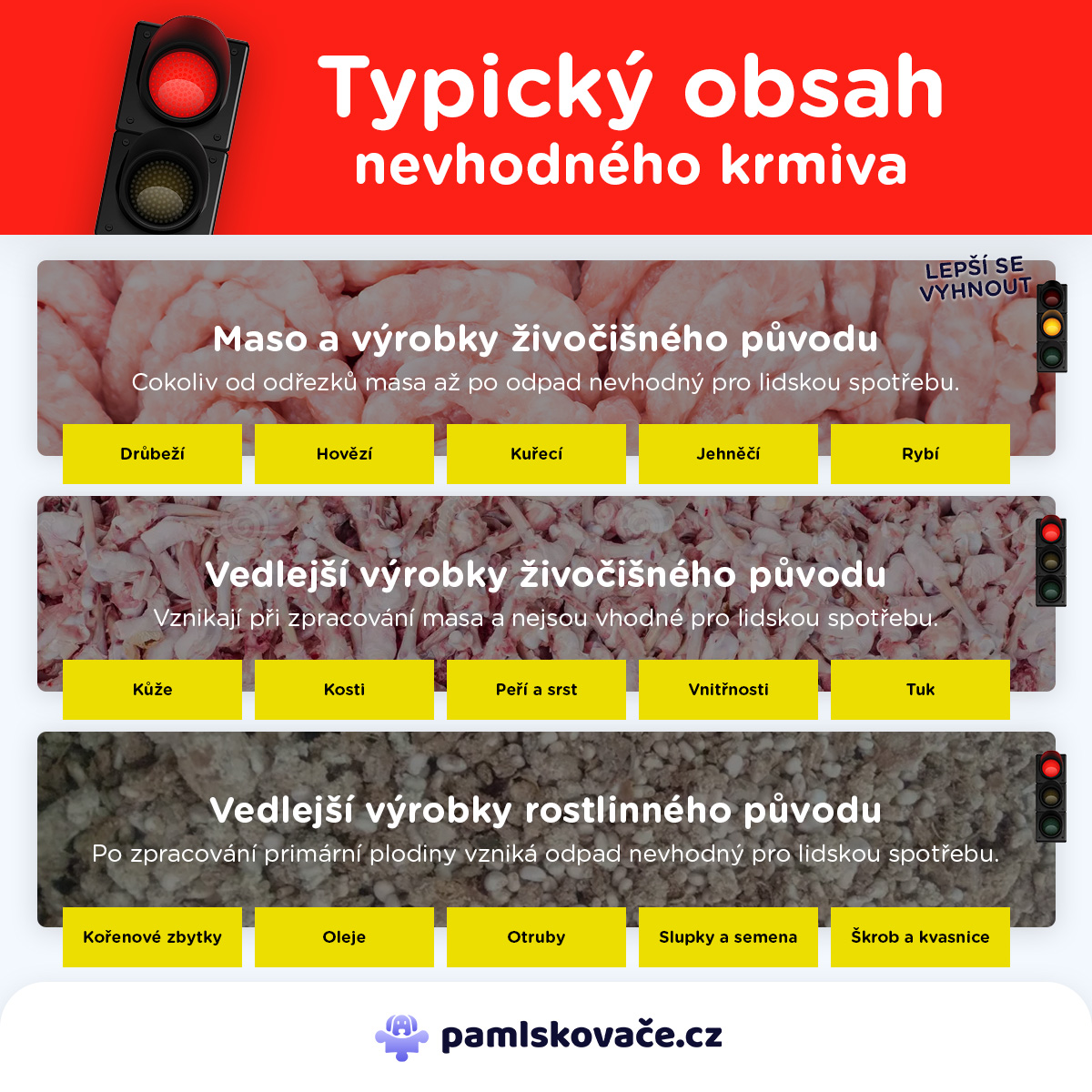 Jedná se o složku, se kterou se v kvalitním psím krmivu rozhodně nesetkáte. Nejlevnější granule pro psy však často obsahují právě vedlejší výrobky živočišného původu. Připadá vám toto označení v pořádku? Nám také, avšak pouze do té doby, než jsme zjistili, co se tímto označením ve skutečnosti skrývá.